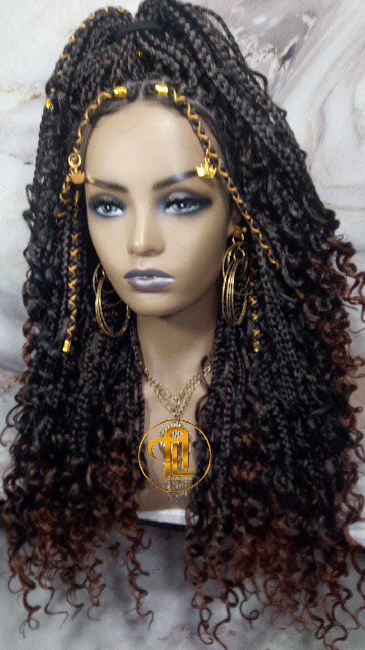 Full Lace Box Braid Wig Ombre Black Brown boho curyly box braids 1b 30 brown auburn Box Braid Wig Long Medium Curly Wavy bohemian gypsy